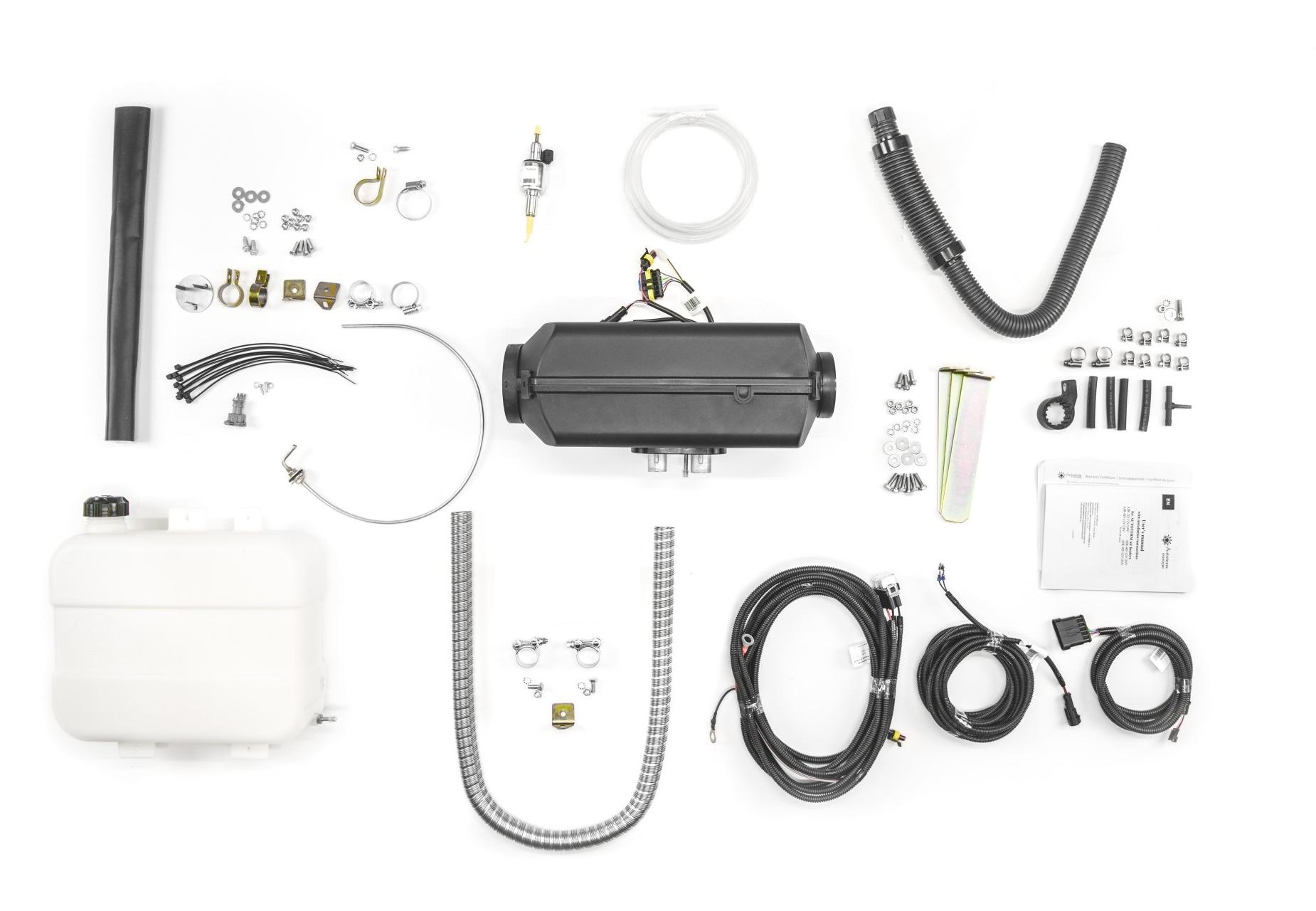 Труба для выхлопа; Гарантийный талон; Топливный насос; Топливная трубка; Крепёж для установки устройства; Проводка для подключения устройства к аккумулятору; ПУ-5; Заборник воздуха; Техническая документация.